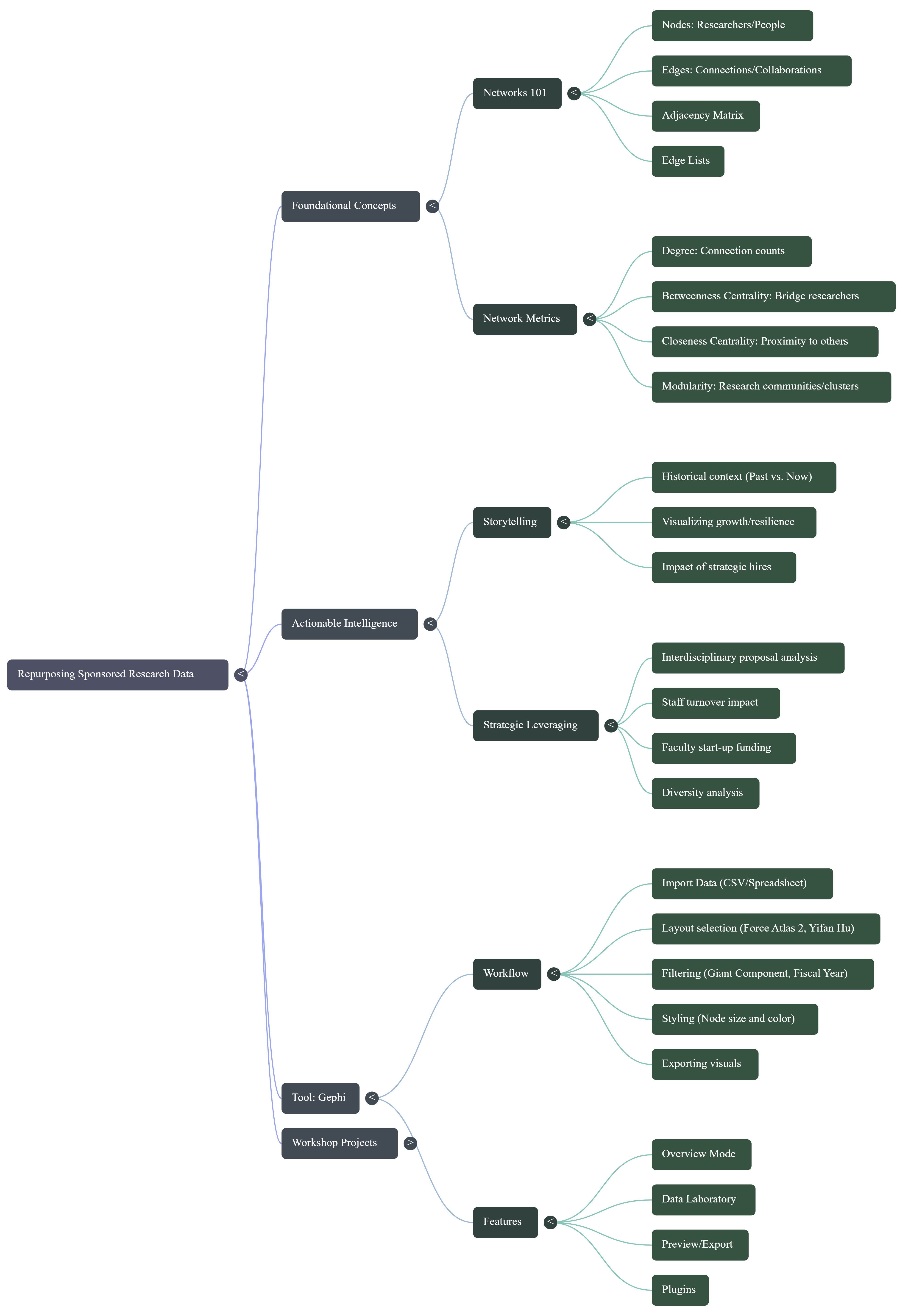 A 2-hour hands-on workshop. Build research collaboration networks from sponsored research data using Gephi, and learn the fundamental concepts and statistical metrics behind them.